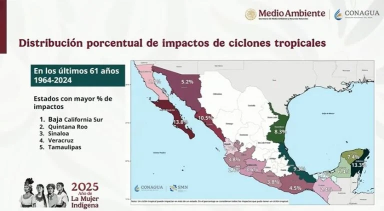 Los datos del SMN indican que los 5 estados de México donde más tocan tierra los huracanes o tormentas tropicales son: