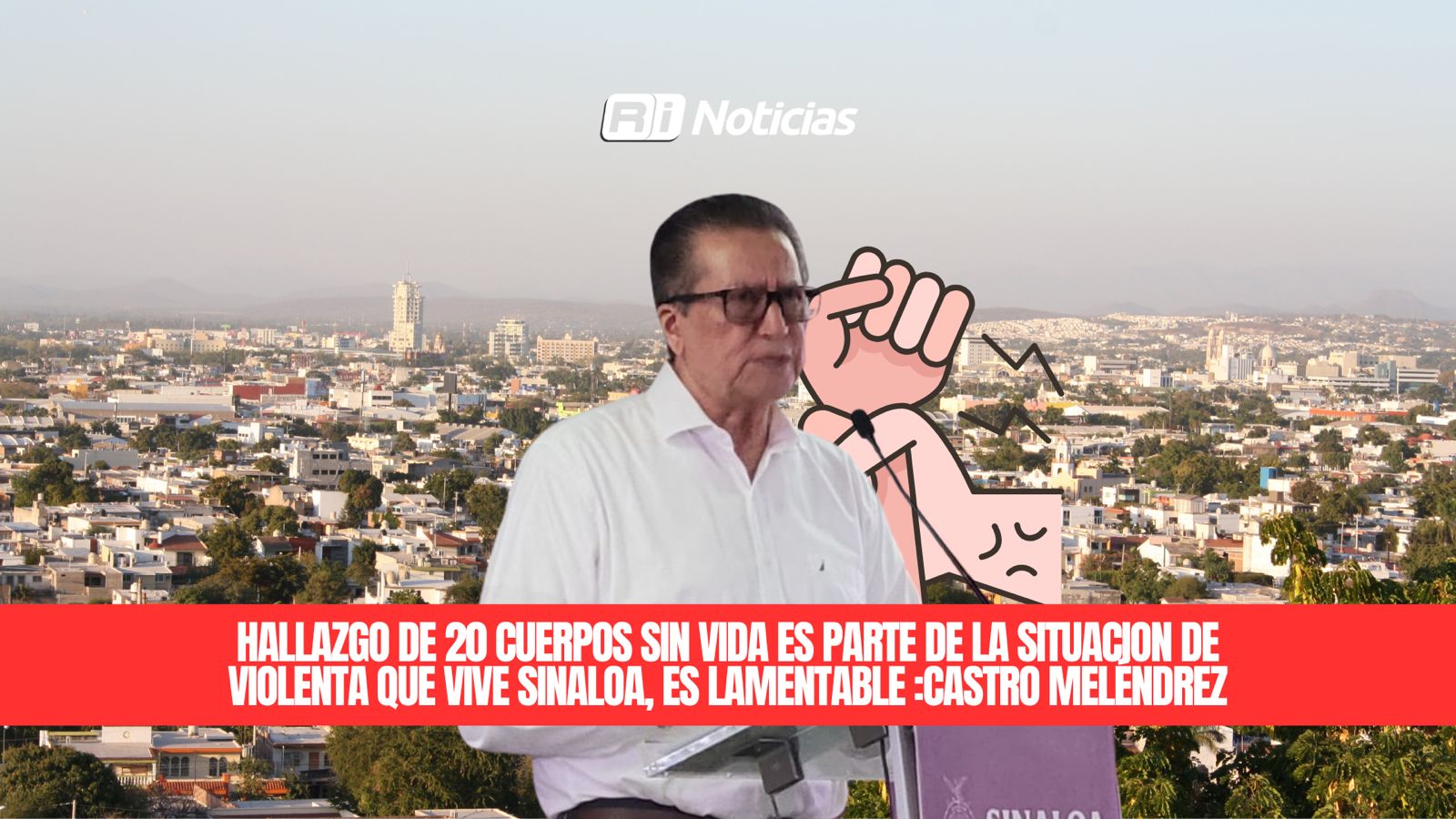 Culiacán, Sin (RI Noticias).-El secretario general de Gobierno, Feliciano Castro Meléndrez, lamentó el hallazgo de 20 cuerpos sin vida entre ellos 5 decapitados ocurrido en las primeras horas de este lunes, hecho que calificó como parte de la situación de violencia e inseguridad que enfrenta actualmente el estado de Sinaloa.