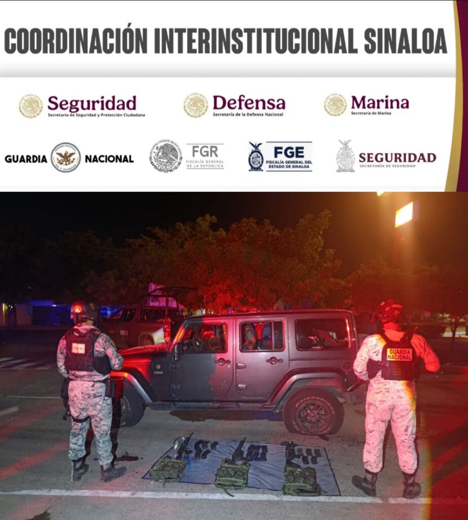 Culiacán, Sin (RI Noticias).- Elementos de la Guardia Nacional y el Ejército Mexicano, en coordinación con la Secretaría de Marina, la Secretaría de Seguridad y Protección Ciudadana, la Fiscalía General de la República, la Fiscalía General del Estado y la Secretaría de Seguridad Pública de Sinaloa, a través de la Policía Estatal Preventiva, detuvieron a tres civiles que resultaron heridos después de agredir a las autoridades; les aseguraron un vehículo robado, armas, municiones y equipo táctico en Culiacán.