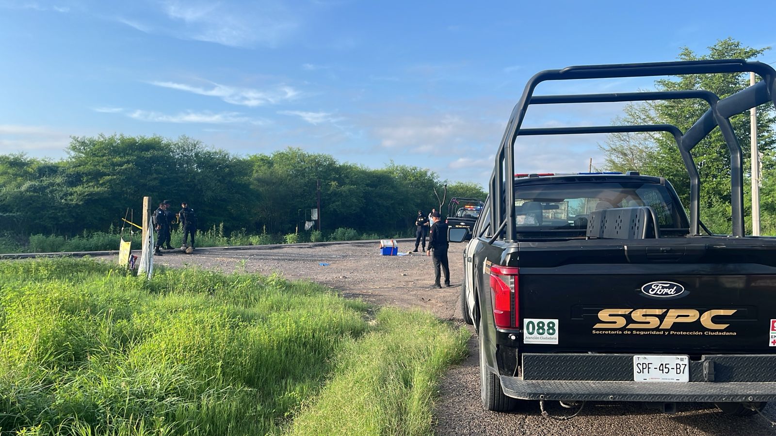 Al lugar se trasladaron elementos de la Secretaría de Seguridad y Protección Ciudadana quienes confirmaron el hallazgo de la hielera, con los restos humanos en el interior y un mensaje escrito en una cartulina colocado debajo del recipiente y sostenido con piedras junto a un bote de cerveza, por lo que la zona fue acordonada.