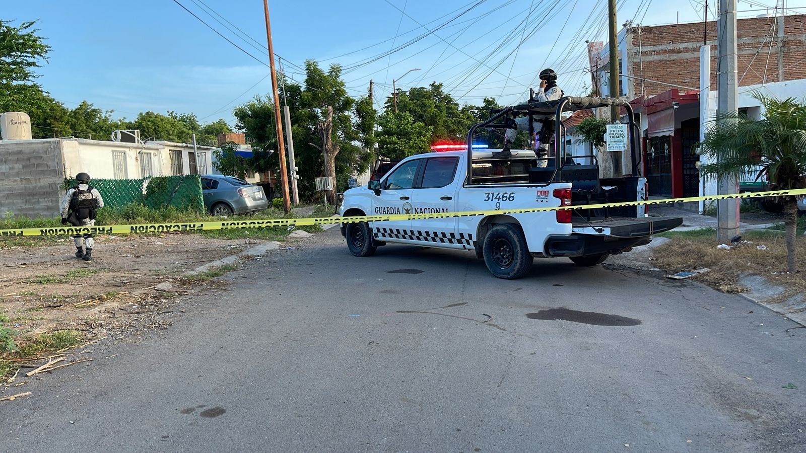 Al llegar, elementos de la Guardia Nacional localizaron al hombre tendido boca arriba sobre la vialidad, frente a los domicilios. El cuerpo presentaba impactos de arma de fuego en diferentes partes.