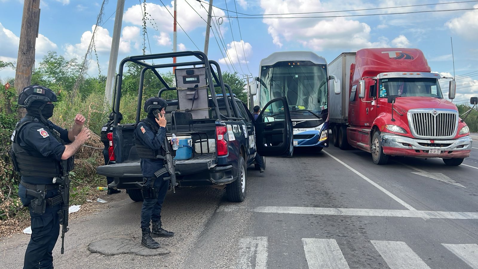 En el lugar de los hechos se confirmó que una persona resultó herida durante el ataque y fue trasladada de inmediato a un hospital para recibir atención médica, mientras que la mujer policía se dice fue atendida en el lugar. Además, un camión de pasajeros que circulaba por el área terminó con varios impactos de bala, lo que puso en riesgo a los usuarios del transporte público.