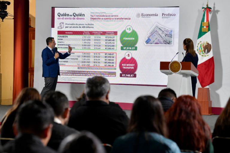 Frente a la presidenta Claudia Sheinbaum Pardo, el procurador expuso que, en la modalidad de envíos en efectivo, es IntercambioExpress, la remesadora que más pesos da por dólar.