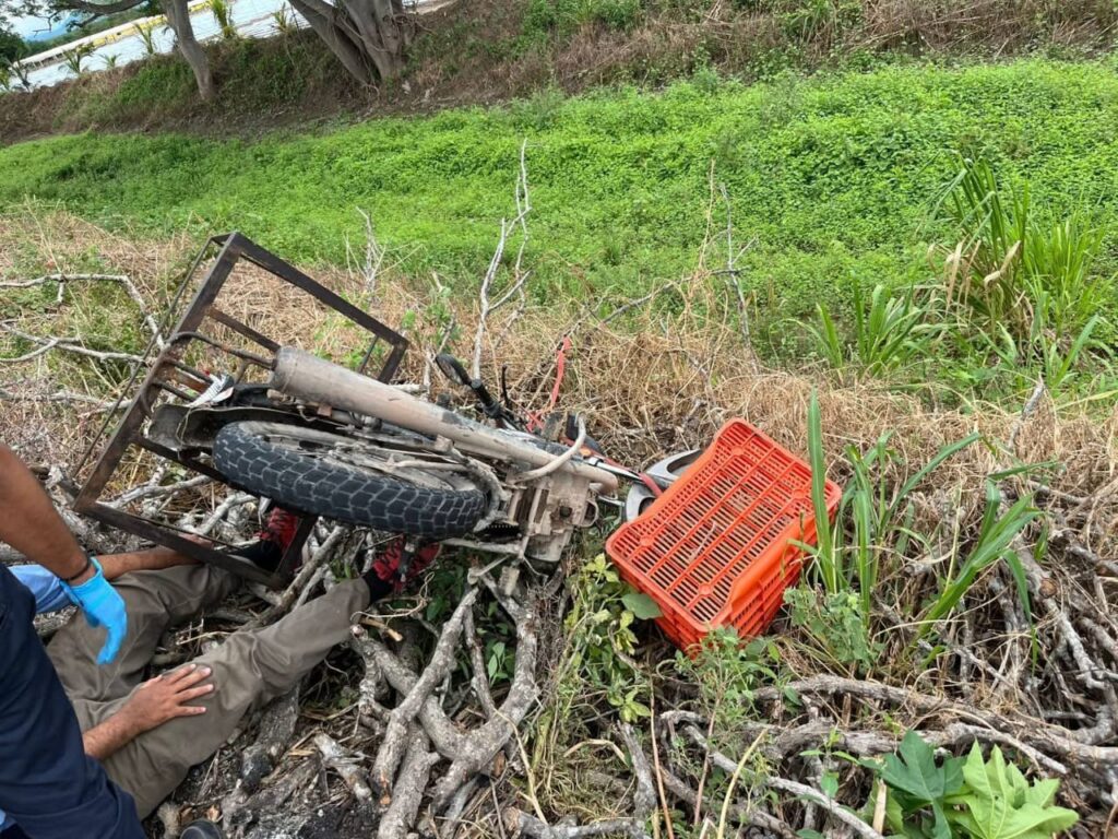 Mazatlán, Sin (RI Noticias).- Un motociclista terminó a un lado del camino tras derrapar y caer a una zanja junto cuando circulaba por la carretera Villa Unión – El Walamo, al sur del municipio de Mazatlán.