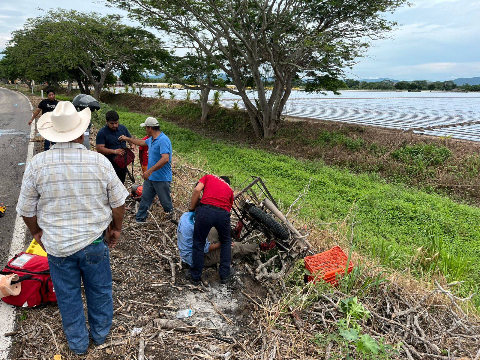Mazatlán, Sin (RI Noticias).- Un motociclista terminó a un lado del camino tras derrapar y caer a una zanja junto cuando circulaba por la carretera Villa Unión – El Walamo, al sur del municipio de Mazatlán.