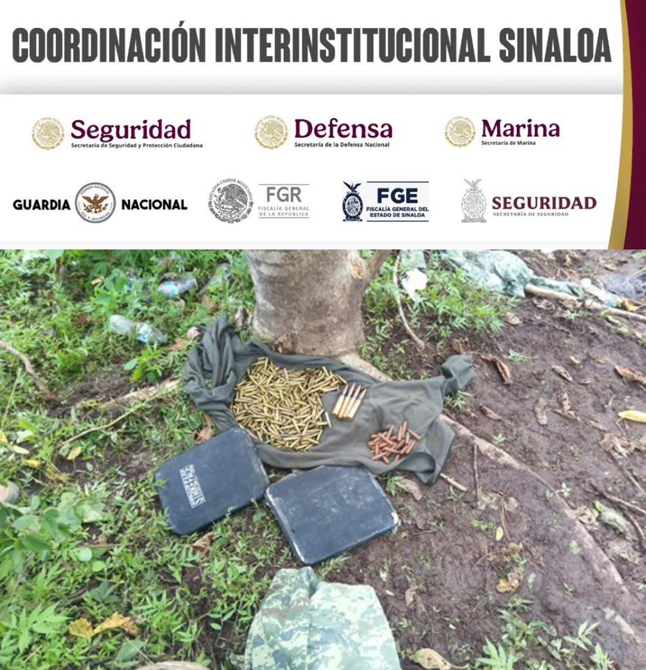 Concordia, Sin (RI Noticias).- En un operativo conjunto del Grupo Interinstitucional conformado por fuerzas federales y estatales, el Ejército Mexicano aseguró un cargamento de municiones y equipo táctico en la zona serrana del municipio de Concordia.