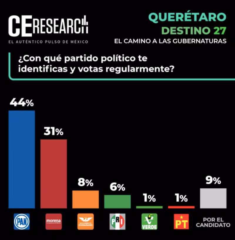 En Querétaro, C&E le da al PAN 44%, frente a 31% de Morena, consolidando este estado como un bastión panista.