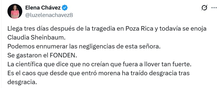 Mientras las autoridades federales y estatales intensifican el despliegue de ayuda humanitaria y equipos de rescate, diversas figuras políticas y mediáticas de oposición aprovecharon la tragedia para responsabilizar al gobierno de Claudia Sheinbaum Pardo, a pesar de que los fenómenos meteorológicos son de carácter natural y global.