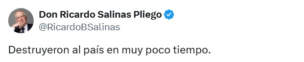 En la misma línea, el empresario Ricardo Salinas Pliego señaló que los militantes de Morena destruyeron al país en muy poco tiempo, mientras que el comunicador Pedro Ferriz Hijar sugirió que familiares y funcionarios afines al gobierno vendan bienes para ayudar a los damnificados.
