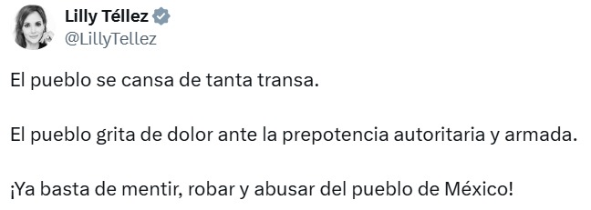 “El pueblo se cansa de tanta transa… El pueblo grita de dolor ante la prepotencia autoritaria y armada… Ya basta de mentir, robar y abusar del pueblo de México”.