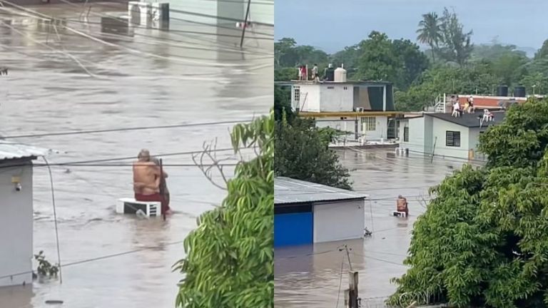 La historia se viralizó rápidamente en redes sociales gracias a un video que una usuaria en Poza Rica, Veracruz, subió a su cuenta de TikTok. Una pareja de abuelitos, rodeados sólo de agua, se mantenían abrazados esperando dos cosas: que los rescataran o que el agua bajara de nivel para poder regresar al lugar en donde estuvo alguna vez su casa.