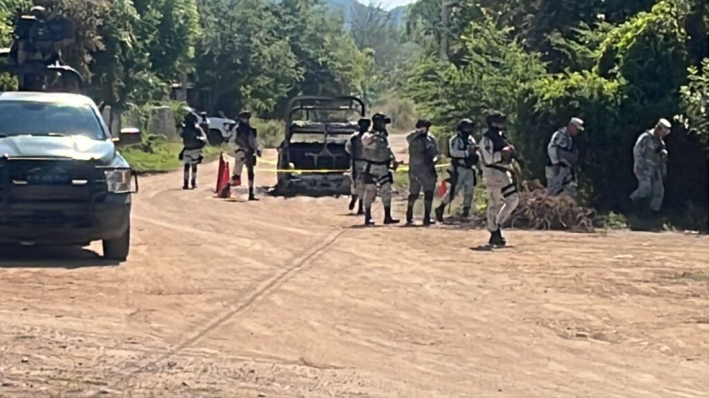 También se dijo de manera extraoficial que una camioneta de la Guardia Nacional quedó completamente calcinada debido a los impactos de arma de fuego.