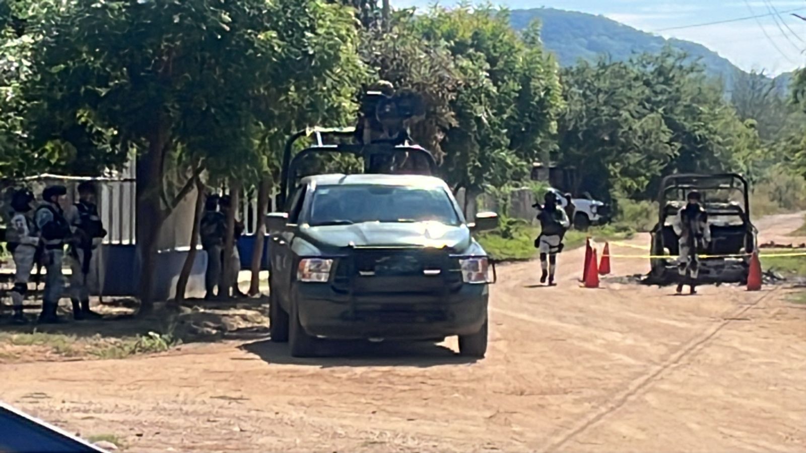 También se dijo de manera extraoficial que una camioneta de la Guardia Nacional quedó completamente calcinada debido a los impactos de arma de fuego.