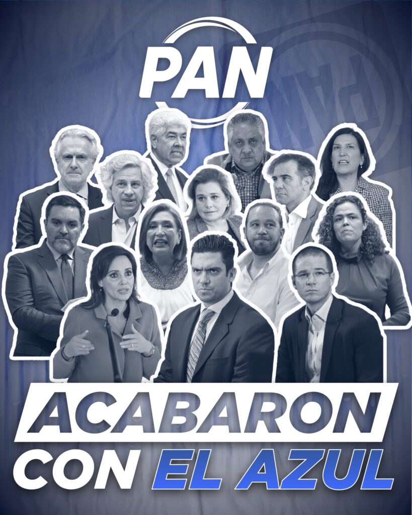 Asimismo, Luján Alcalde publicó una imagen con las caras de varios panistas y la leyenda en letras mayúsculas “Acabaron con el azul”.