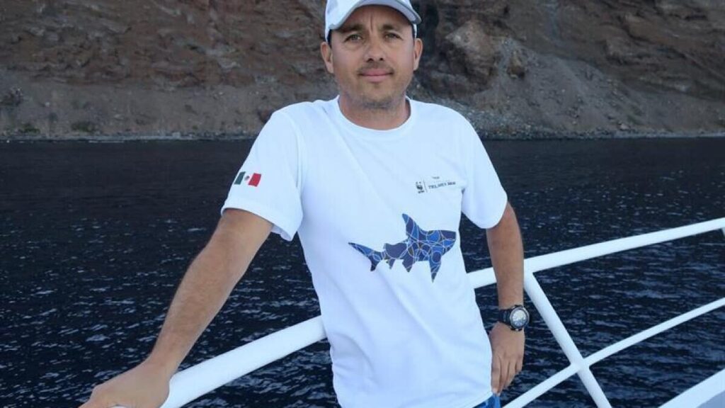 Fundador de la organización Pelagios Kakunha, Hoyos impulsa la protección internacional de tiburones migratorios a través del seguimiento satelital. “Los tiburones cruzan fronteras, por eso debemos protegerlos más allá de las leyes de un solo país”, señala.