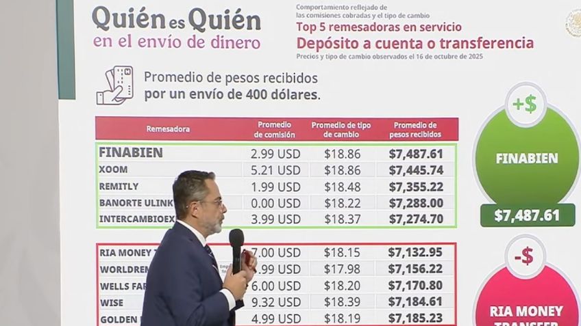 César Iván Escalante Ruiz, procurador Federal del Consumidor, informó que la remesadora Finanbien es la que mejor tipo de cambio tiene para la modalidad de depósito a cuenta o transferencia