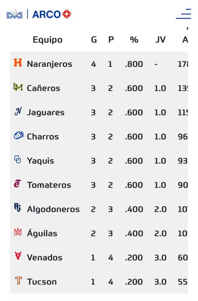 Así queda el standing de la Liga Arco Mexicana del Pacífico