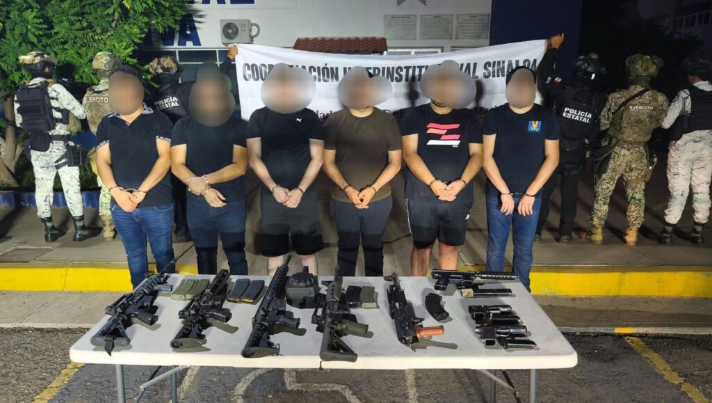 Culiacán, Sin (RI Noticias).- En un operativo ejecutado por elementos del Grupo Interinstitucional conformado por autoridades federales en un complejo de departamentos del sector Tres Ríos, se logró la detención de seis civiles y el aseguramiento un arsenal y vehículos en hechos registrados en la capital sinaloense.