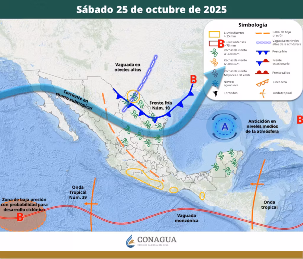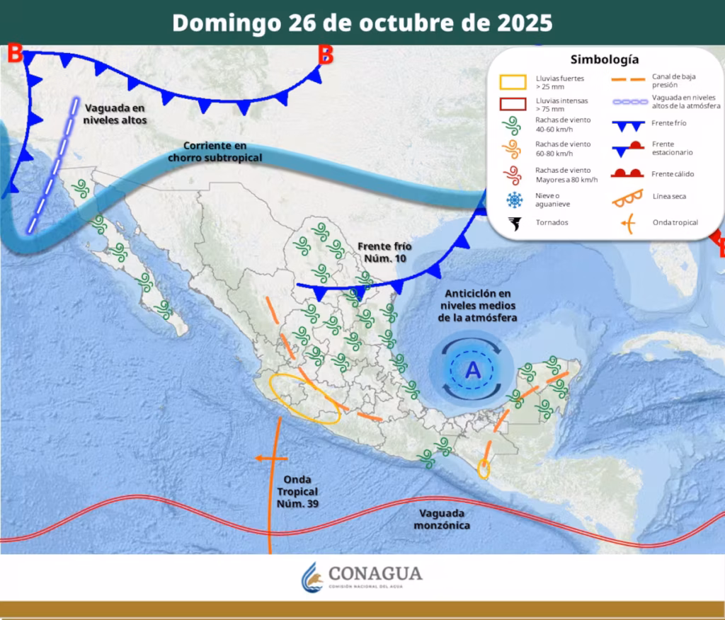 El Servicio Meteorológico Nacional (SMN), la fuente oficial del Gobierno de México, emite el siguiente aviso meteorológico para el fin de semana del 25 al 26 de octubre del 2025.