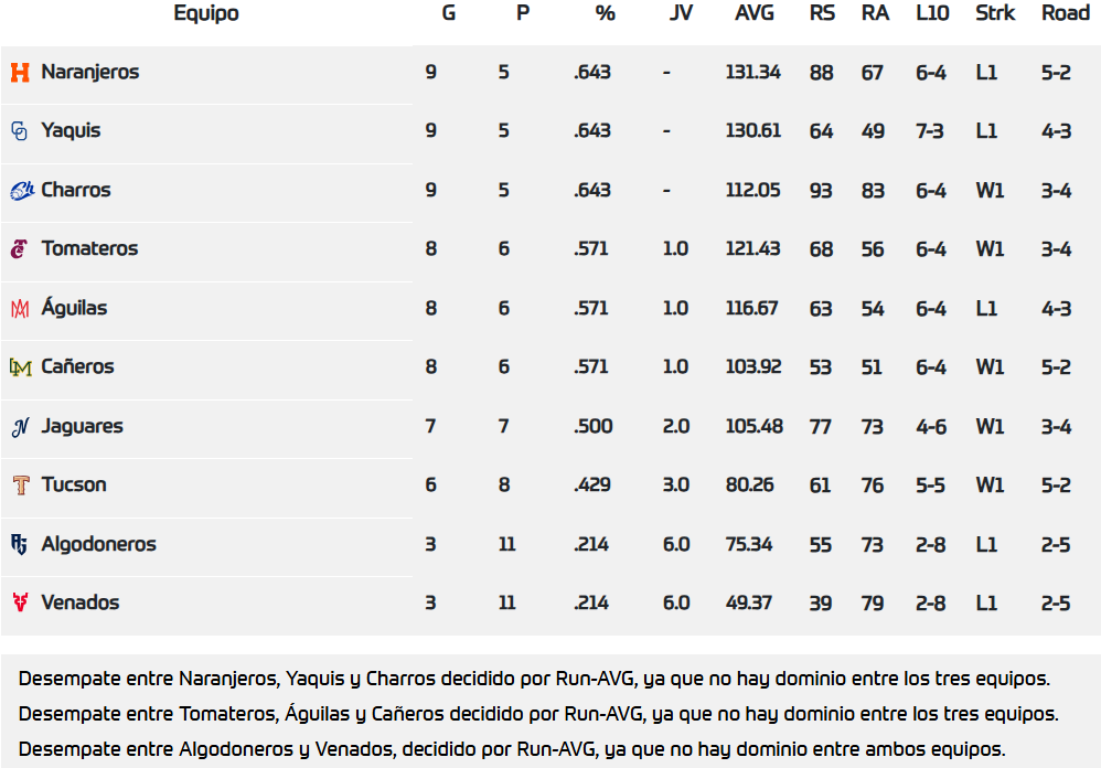 - Tomateros de Culiacán 9–8 Naranjeros de Hermosillo
