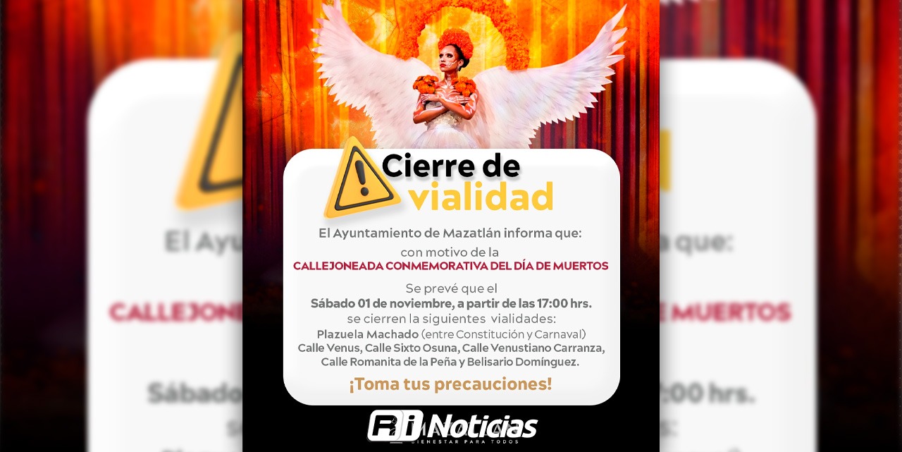 Mazatlán, Sinaloa. – Con motivo de la tradicional Callejoneada conmemorativa del Día de Muertos, a desarrollarse el sábado 1 de noviembre, la Secretaría de Seguridad Pública Municipal, a través de la Subdirección de Tránsito, informa que habrá corte a la circulación en el Centro Histórico.