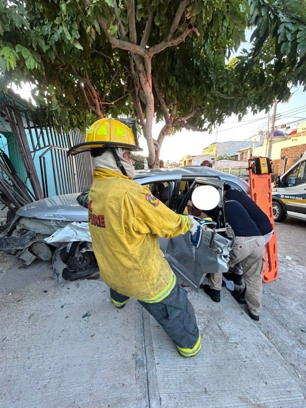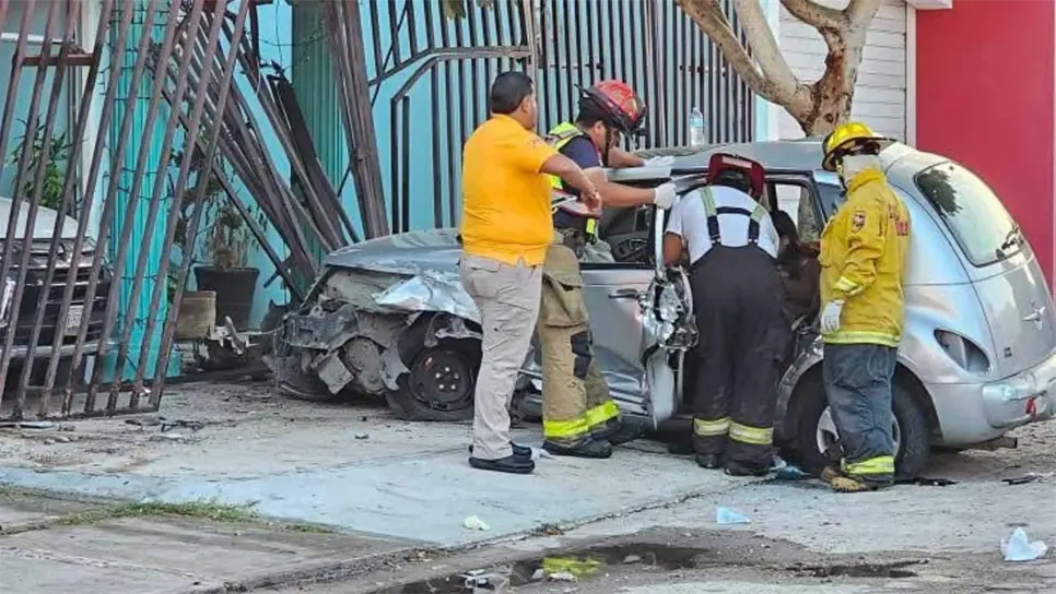 Mazatlán, Sin (RI Noticias).- Esta mañana se registró un aparatoso accidente en el fraccionamiento Lomas de Mazatlán, en donde tres personas resultaron lesionadas después de que el conductor de un vehículo perdió el control de la unidad y se impactó contra una reja metálica de un domicilio y un árbol.