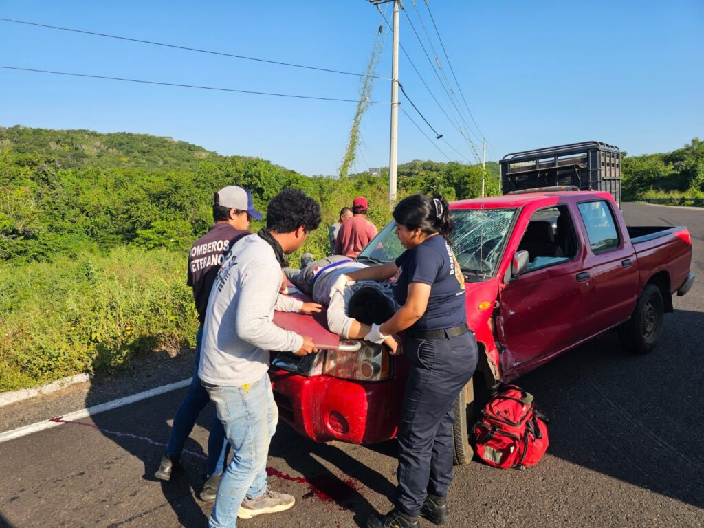 Mazatlán, Sin (RI Noticias).- Un motociclista terminó encima del cofre de una camioneta tras registrarse un percance vial por la Carretea Internacional México 15, cerca de la comunidad de El Habal, al norte de Mazatlán.