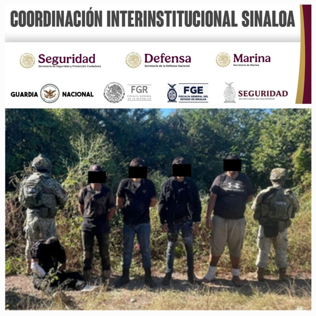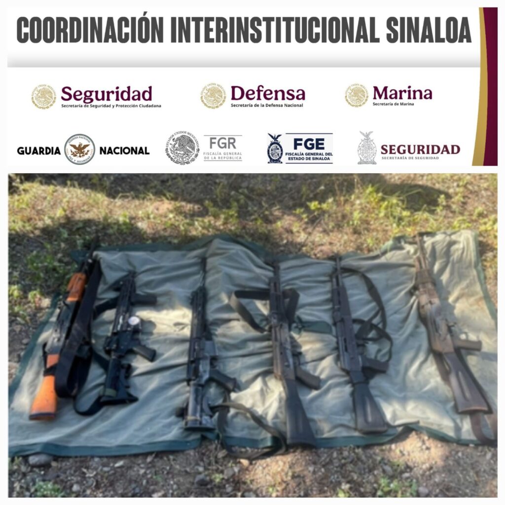 El Rosario, Sinaloa (RI Noticias). – Durante un operativo conjunto en el municipio de Rosario, elementos del Ejército Mexicano, en coordinación con la Guardia Nacional, la Secretaría de Marina, la Secretaría de Seguridad y Protección Ciudadana, la Fiscalía General de la República, la Fiscalía General del Estado y la Policía Estatal Preventiva, lograron liberar a dos personas y asegurar a cinco civiles, además de incautar armas, cargadores, cartuchos y un vehículo. En el enfrentamiento, dos agresores fueron reducidos.
