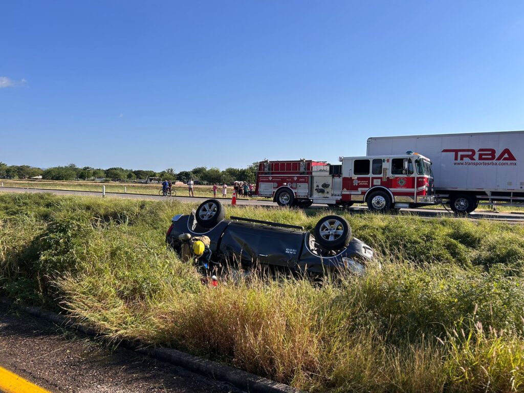 De acuerdo a la información de las autoridades, viajantes circulaban en un vehículo compacto desde Mazatlán hacia el sur del país, cuando presuntamente habría sufrido la explosión de una llanta lo que provocó la volcadura y salida del camino del vehículo.