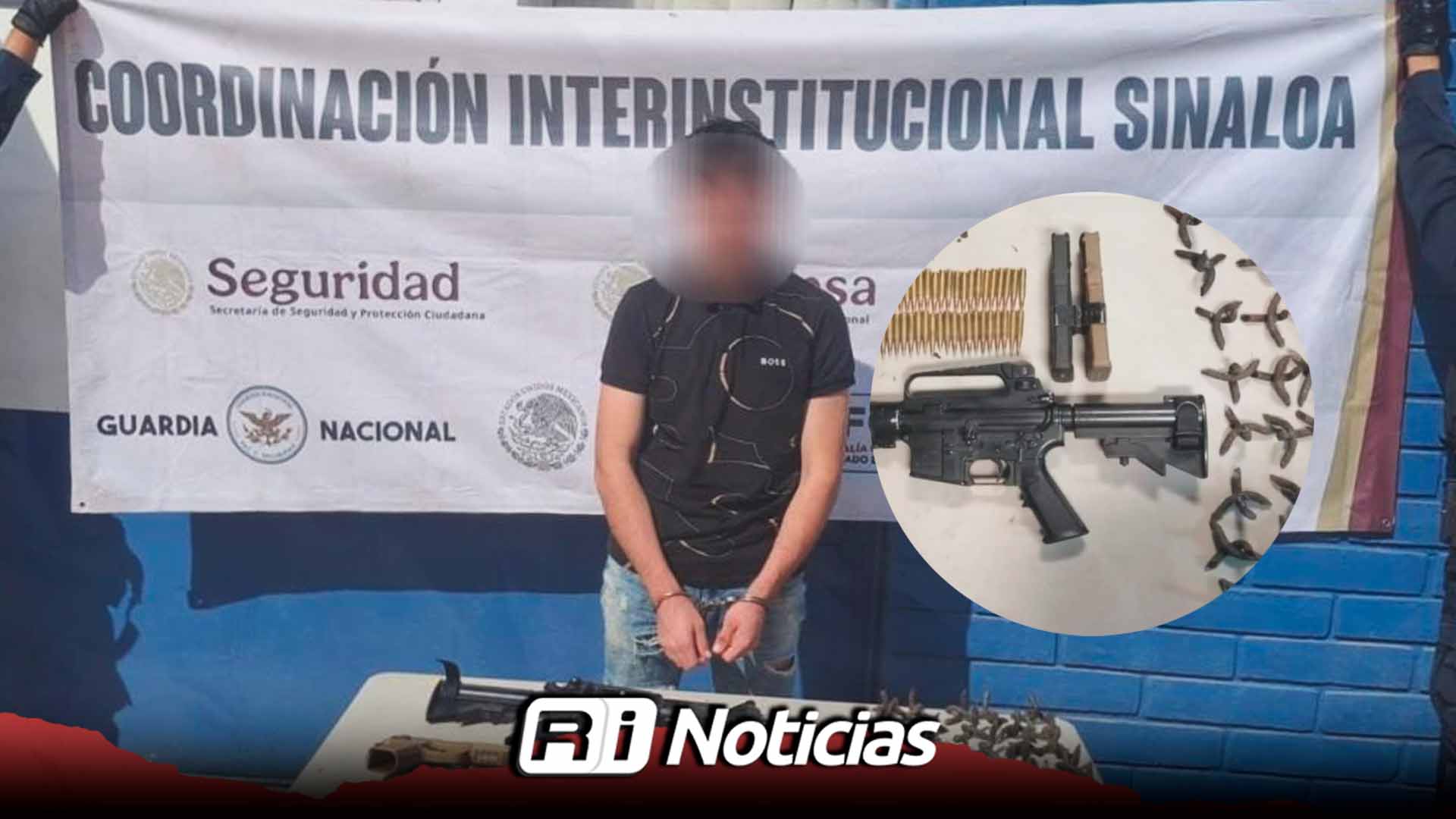 Un hombre fue detenido este sábado en Culiacán luego de una persecución que inició en el sector Tres Ríos y concluyó en la colonia Infonavit Humaya. El sujeto viajaba en un vehículo con reporte de robo y portaba armas, cargadores y ponchallantas, informó la Secretaría de Seguridad Pública del Estado.