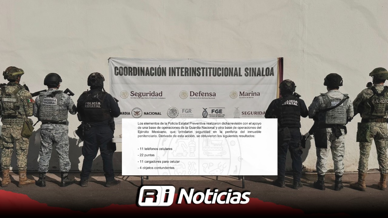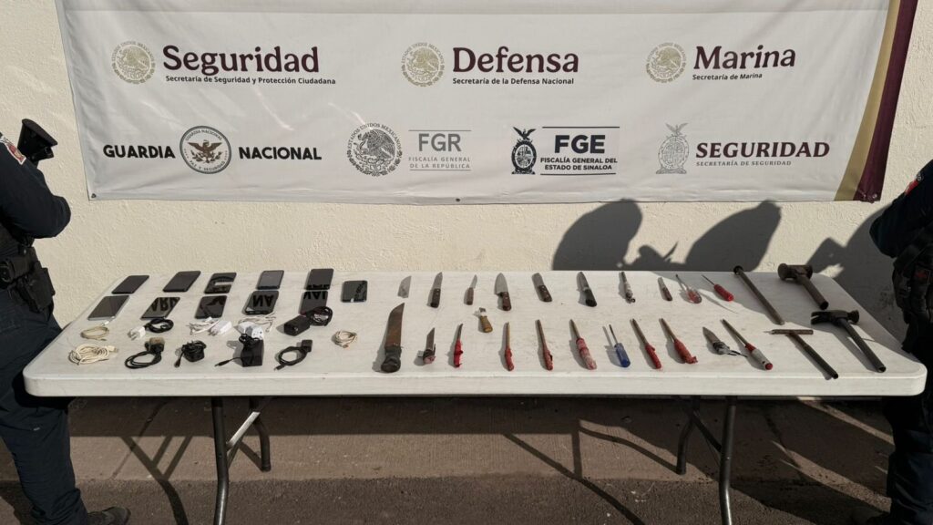 Culiacán, Sinaloa (RI Noticias). -Durante una nueva inspección realizada en el Centro Penitenciario de Aguaruto, autoridades de los tres niveles de gobierno decomisaron diversos artículos prohibidos, entre ellos armas punzocortantes y teléfonos celulares.