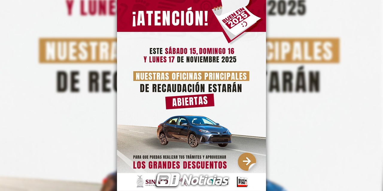 Culiacán, Sinaloa.- Con motivo del Buen Fin, el Servicio de Administración Tributaria del Estado de Sinaloa (SATES) ampliará los horarios de atención en todas las oficinas de recaudación, módulos y colecturías del estado, con el objetivo de facilitar a las y los contribuyentes el acceso a los beneficios y descuentos vigentes durante esta temporada.