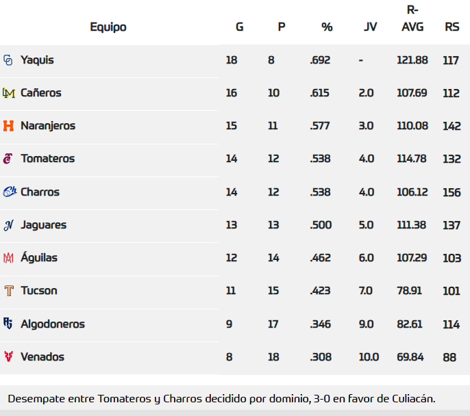 - Tomateros 9-4 Charros | Culiacán cerró serie con barrida gracias a dos jonrones de Orlando Martínez y uno de Fernando Villegas. El bullpen mantuvo el control y los guindas llegarán motivados a su serie del fin de semana ante Algodoneros.
