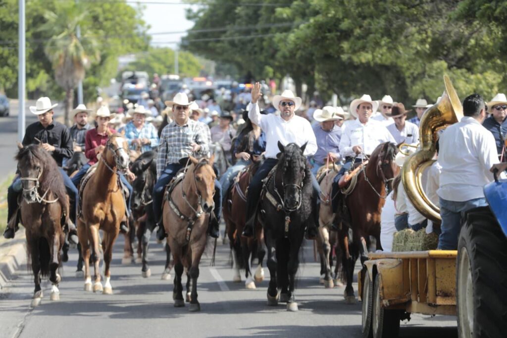 Acompañado del presidente de la Unión Ganadera Regional de Sinaloa, José Alfredo Sáinz Aispuro, del secretario de Agricultura, Ismael Bello y de un contingente aproximado de 2 mil jinetes y 737 equinos, refrendó su compromiso con el sector ganadero sinaloense, para mejorar las condiciones de quienes se dedican a este sector primario, que forman parte del motor económico de la entidad, también agradeció al gremio por la realización de este evento de mucha acogida por los sinaloenses, en especial por los más pequeños quienes se divierten entre juegos mecánicos y la exposición de ganado bovino, porcino y ovicaprino.