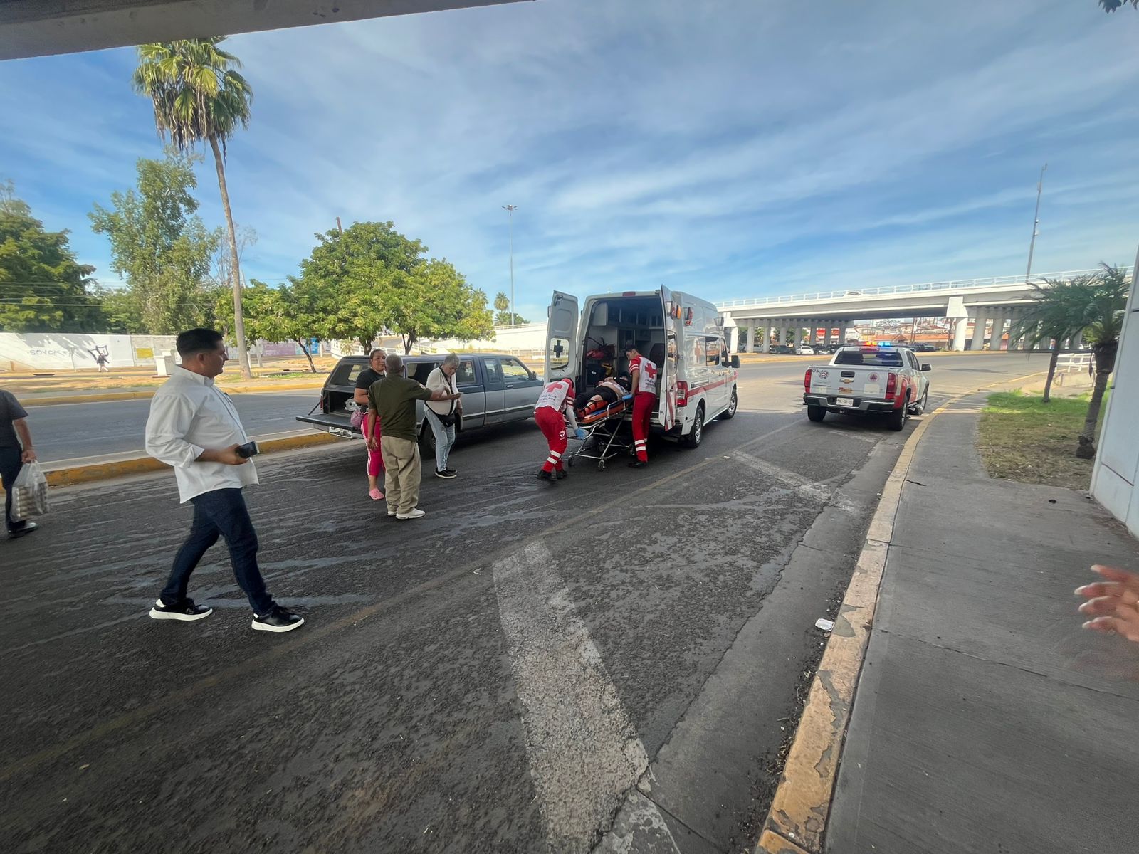 Paramédicos de Cruz Roja y personal de Protección Civil acudieron al llamado de emergencia quienes auxiliaron a la mujer que resultó con varios golpes en el cuerpo.