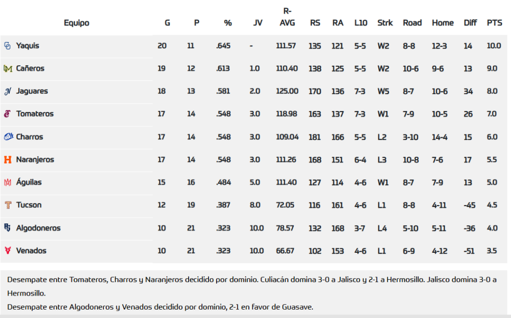 Yaquis 7–3 Algodoneros: Obregón se mantiene en la cima del standing con victoria en casa. Rally de tres en la cuarta entrada y buen relevo encabezado por Nick Gardewine aseguraron el triunfo. Miguel Peña cargó con la derrota.