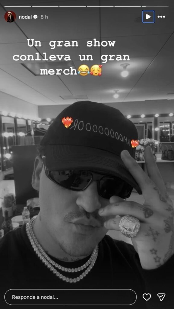 “Un gran show conlleva una gran merch”, escribió Nodal acompañado de emojis de risa y de corazones