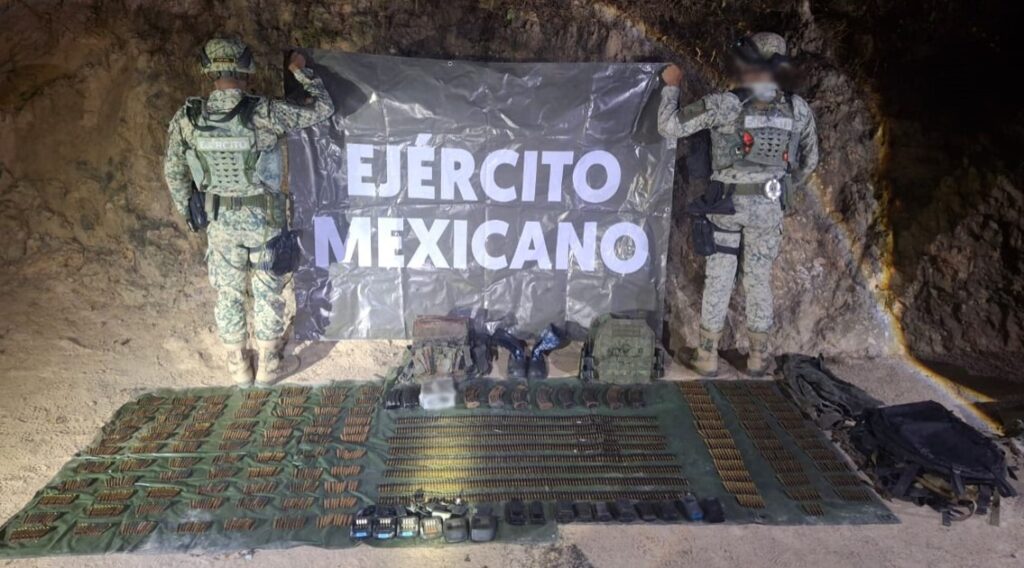 Concordia, Sin (RI Noticias).- Elementos del Ejército Mexicano aseguraron después de realizar recorridos por la carretera Durango-Mazatlán cerca del municipio de Concordia, unas mochilas que se encontraban junto al camino en donde había más de 2 mil cartuchos, cintas eslabonadas, cargadores y baterías para radios de comunicación, además de chalecos tácticos y cargadores de arma de fuego.
