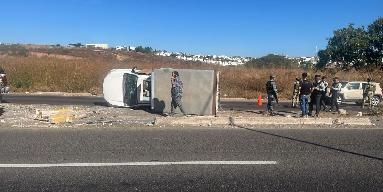 Culiacán, Sin (RI Noticias).– Una camioneta de carga perteneciente a la empresa Campero, del Mercado de Abastos, terminó volcada la mañana de este miércoles sobre la vialidad La Costerita, cerca del complejo habitacional La Primavera.