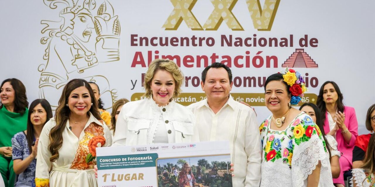 Mérida, Yucatán. – En el marco del XXV Encuentro Nacional de Alimentación y Desarrollo Comunitario que organiza el Sistema Nacional DIF y el Sistema DIF Yucatán, la Dra. Eneyda Rocha Ruiz, presidenta del Sistema DIF Sinaloa, recibió de manos del gobernador de Yucatán, maestro Joaquín Díaz Mena, el premio del primer lugar en la categoría de Programa de Salud y Bienestar Comunitario y el tercer lugar con la fotografía del Programa de Atención Alimentaria a Personas en Situación de Emergencia y Desastre.