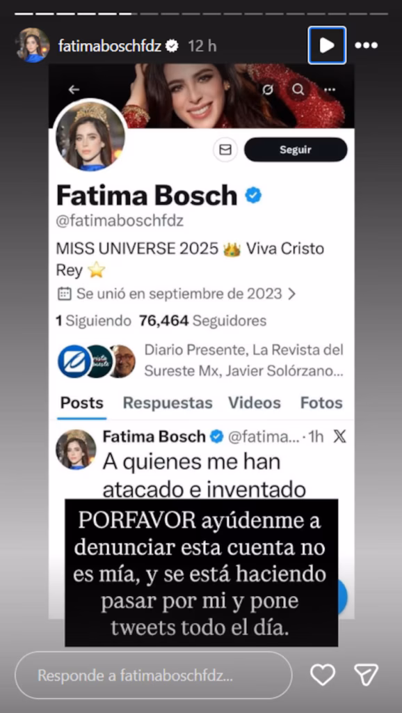 Rocha Cantú, quien públicamente negó los señalamientos, respaldó a Fátima Bosch, quien a través de sus redes sociales se ha declarado víctima de una campaña de desprestigio que —según afirmó— ha sido impulsada por exparticipantes de Miss Universo.
