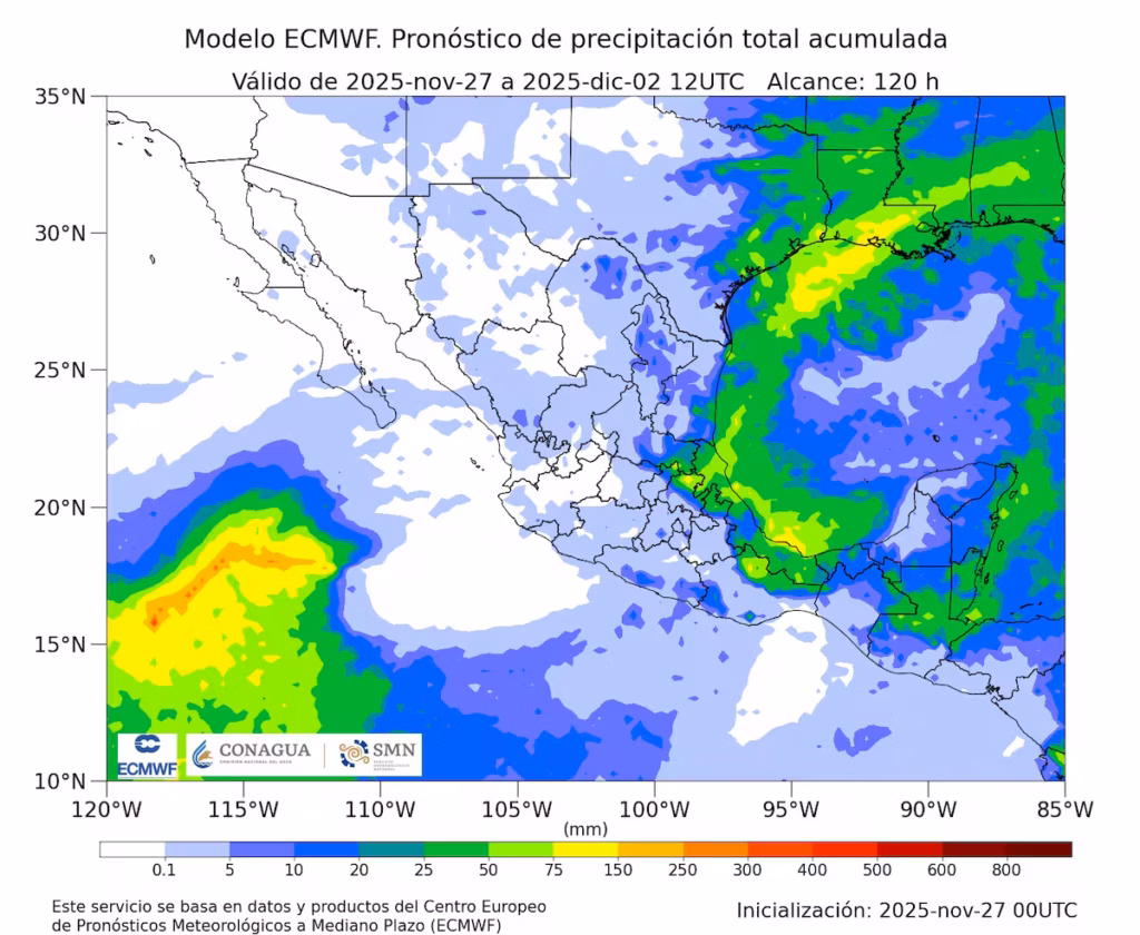 El SMN señala que sus efectos se extenderán hasta el lunes 1 de diciembre, mientras un nuevo sistema frontal se aproxima al norte del territorio.