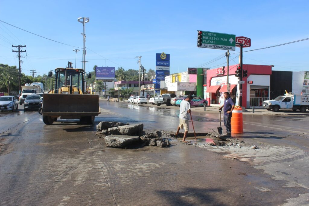 Mazatlán, Sinaloa. – Debido a los trabajos de reparación de una fuga de agua detectada en el cruce de las avenidas Gabriel Leyva e Internacional, a un costado del fraccionamiento Del Bosque, la Subdirección de Tránsito Municipal informó sobre la reducción de carriles en el área.