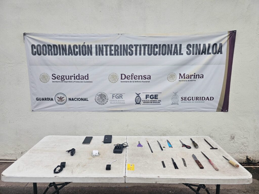 Durante el cateo, los oficiales localizaron varios objetos prohibidos, entre ellos dos teléfonos celulares, cuatro cargadores, una tarjeta SIM, un cargador para radio y trece puntas metálicas. Todo el material fue asegurado y entregado a las autoridades correspondientes para su investigación.