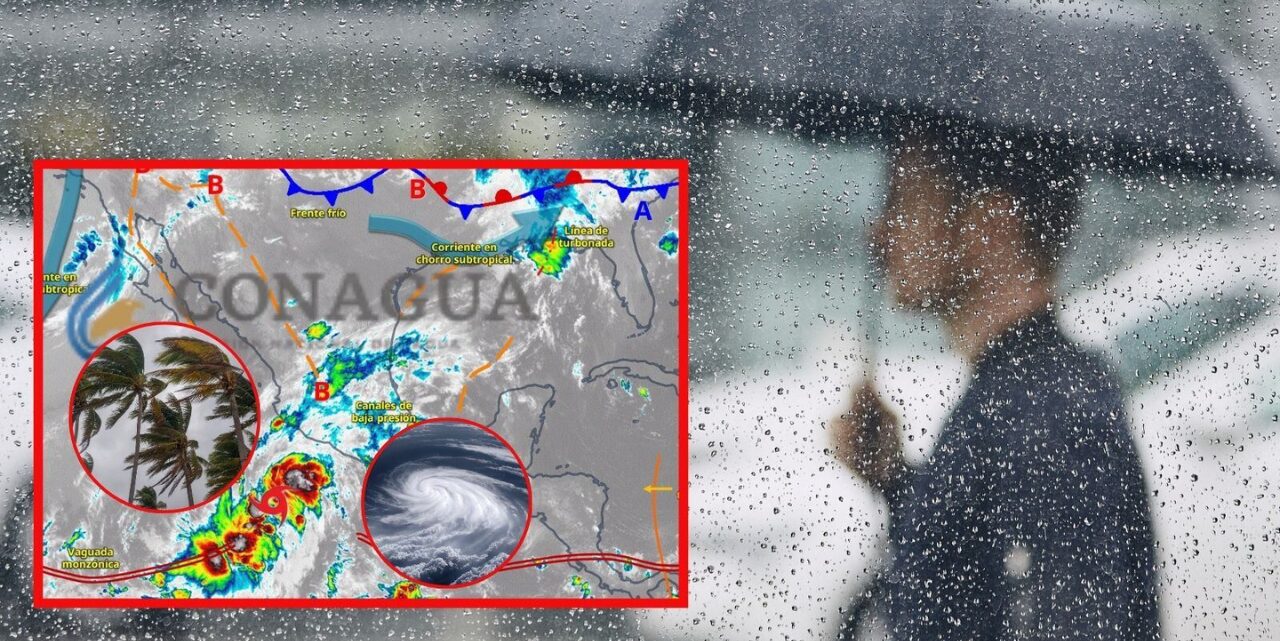 Finalmente, un canal de baja presión en el sureste de la República Mexicana, en combinación con el ingreso de humedad del océano Pacífico, golfo de México y mar Caribe, ocasionará lluvias e intervalos de chubascos en zonas del centro, oriente, sur y sureste del territorio mexicano, incluidos el Valle de México y la península de Yucatán.