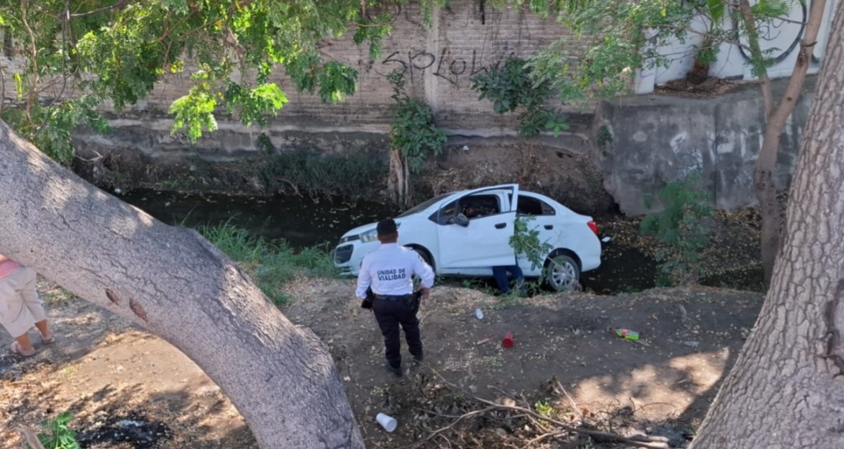 Mazatlán, Sin (RI Noticias).- Un descuido al volante provocó que un conductor cayera a un barranco y un canal pluvial a la bajada del paso superior de la avenida Gabriel Leyva, en la colonia Jesús García.