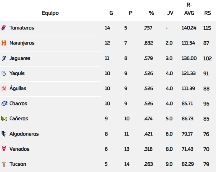 - Naranjeros de Hermosillo 4-1 Jaguares de Nayarit
