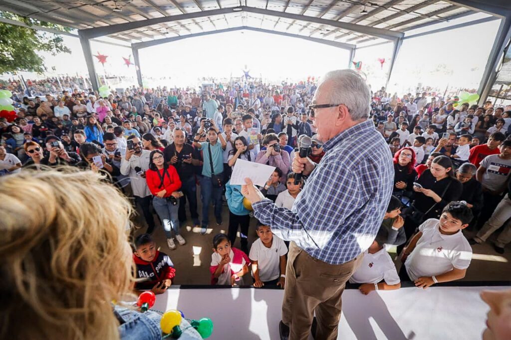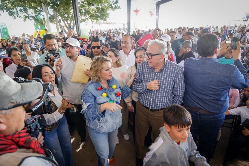 Ahome, Sinaloa.- Miles de familias de varias comunidades de la sindicatura de Higueras de Zaragoza disfrutaron de la Gran Posada 2025 que ofrecieron el gobernador Rubén Rocha Moya y su hija, la doctora Eneyda Rocha Ruiz, presidenta del Sistema DIF Sinaloa, en esta comunidad de la Bolsa de Tosalibampo 2, como lo había ofrecido el mandatario estatal apenas el viernes pasado, cuando visitó esta población para resolver un problema de comercialización de la cosecha local de frijol.