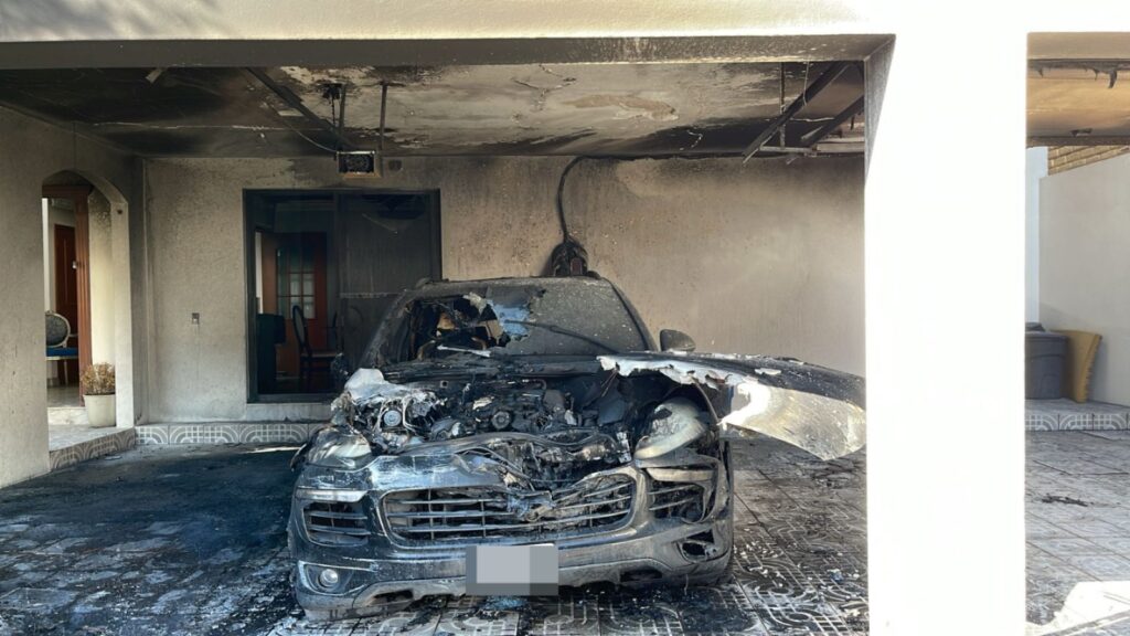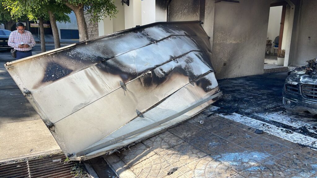 Culiacán, Sin (RI Noticias). – Sujetos desconocidos arribaron a un domicilio de la colonia Chapultepec y derribaron el portón de la cochera para luego prenderle fuego a un vehículo que se encontraba estacionado el cual quedó completamente calcinado.
