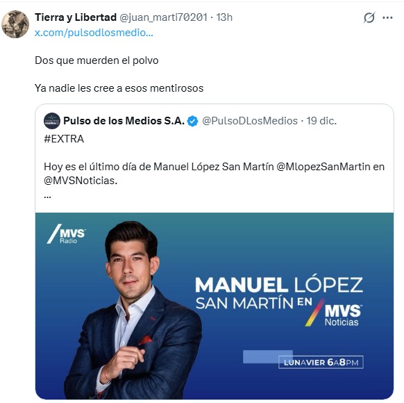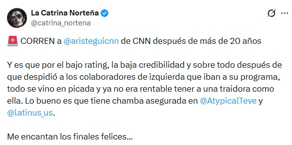 El anuncio generó una ola inmediata de reacciones en redes sociales, donde el adiós de Carmen Aristegui dividió opiniones. Por un lado, algunos usuarios anticiparon que su salida sería interpretada como resultado de presiones de los gobiernos en turno, mientras otros recordaron episodios pasados de su carrera en los que fue defendida por sectores que hoy se muestran críticos.